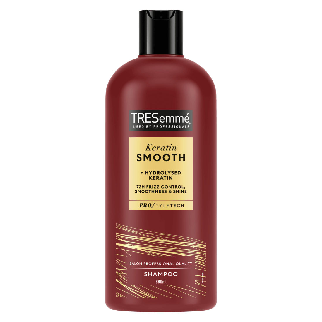 There's something about sleek, frizz-free hair that lets you take on the day with confidence. You can now get that style without having to go to a salon, with Tresemme Keratin Smooth Shampoo. Featuring hydrolysed keratin, this moisturising shampoo restores smoothness and shine to frizzy hair, offering up to 72 hours of frizz control. Its professional-quality formula uses our PRO Style Technology with amino acids and ceramides to leave your hair strong and manageable with continued use. For luxuriously smooth and sleek hair with a healthy-looking shine, start your routine by applying a generous amount of Tresemme Keratin Smooth Shampoo to wet hair. Gently massage the scalp with your fingertips to work into a lather, then rinse thoroughly. Follow with our Keratin Smooth Conditioner, and style with your favourite Tresemme styling products as needed. At Tresemme, we've always understood that style is more than a look: it's a part of you. With our professional-quality hair care, a world of style possibilities is yours to achieve. Every choice we make at Tresemme, from the values we promote - such as not testing on animals and being PETA approved - to the stylists we work with, right down to the carefully selected ingredients we use, are made with intention and inspired by the latest trends and style. Because 70 years on, we believe in the power of style. So tell your story, land that job, make your mark - and achieve your aspirations with confidence. With Tresemme, your style can match your ambition.