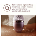 Uniquely curved, intelligent attachments perfectly fit your curves and adapt the treatment programs for each body area. There are five adjustable light settings. The SmartSkin sensor detects your skin tone and indicates the most comfortable light setting for your skin on whichever area you're treating.