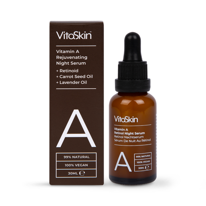This powerful Vitaskin Vitamin A Rejuvenating Night Serum is packed with Retinoids and Carrot Seed Oil which contains high levels of Vitamin A and Vitamin E to help promote softer, smoother, and visibly younger-looking skin.
